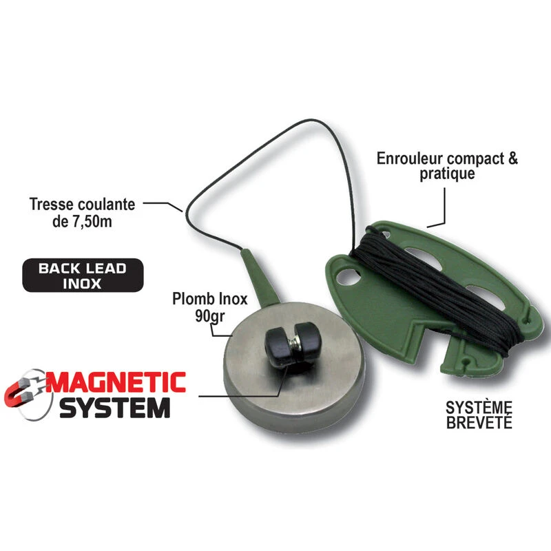 Afin de maintenir votre back lead Magnetic en position une fois sa mise en place effectuée, il est fourni avec un enrouleur compact permettant de pouvoir être rattaché à votre rod pod ou buzz bar. De plus, cet enrouleur est garni de pas moins de 7m50 de tresse coulante permettant ainsi de parfaitement se plaquer sur le fond tout en vous offrant la longueur suffisante pour une bonne mise en place du back lead.