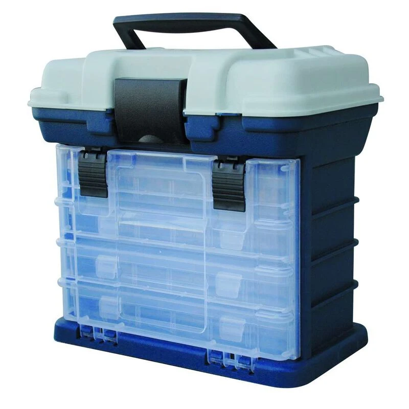 Boîte de rangement bien pensée et pratique pour la pêche des carnassiers, avec sa façade transparente et ses 4 petites boîtes individuelles.