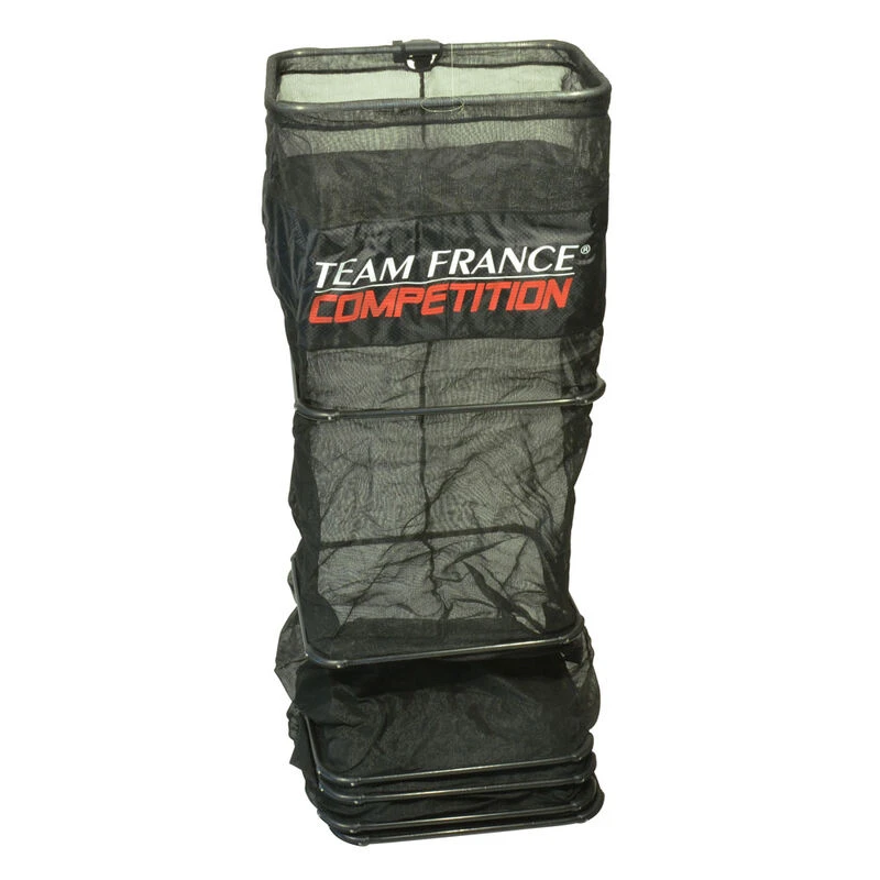 Bourriche pour gros poissons de 3 mètres de longueur, équipée d’anneaux renforcés et indéformables : tous les anneaux sont recouverts d’une gaine de protection et tous les angles sont équipés d’une protection supplémentaire. Ainsi, la bourriche BIG FISH TEAM présente des caractéristiques de robustesse hors norme et voit sa durée de vie prolongée par rapport à une bourriche standard. Cette bourriche dispose également d’un filet en mailles extrêmement fines, et résistantes aux accros (notamment aux épines dorsales de certains poissons comme les carpes), ce qui la rend idéale pour la pêche en carpodrome.
