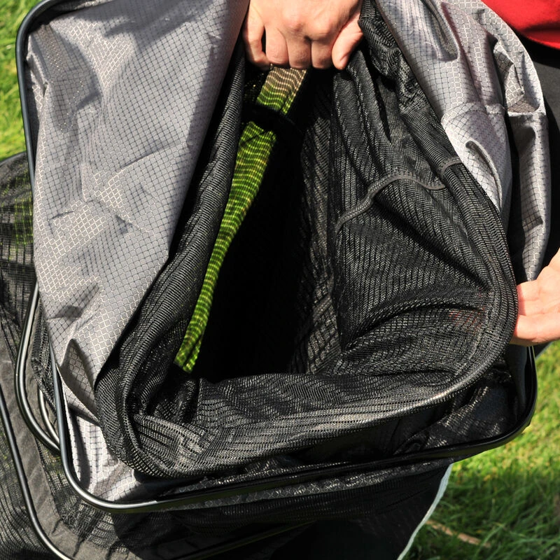 Anneaux supérieurs très grands, pour accueillir la tête d’épuisette et déposer les poissons dans la bourriche sans avoir à les toucher