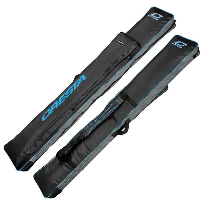 Ces fourreaux sont renforcés afin de protéger au mieux votre matériel. Chacune des deux parties comprennent un grand espace de rangement avec des élastiques permettant de pouvoir ranger les cannes dans leur tube. A l’avant se trouve un large compartiment qui vous permettra d’y ranger parapluies, repose-cannes et autres accessoires. Le sac est muni d’une bandoulière et d’une poignée en néoprène.