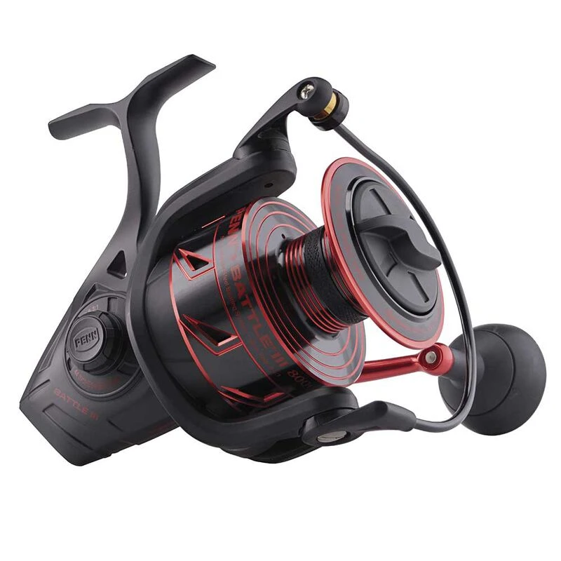 Le Penn Battle III est désormais plus resistant, plus fluide et plus robuste que jamais. En associant notre technologie CNC gear exclusive, le système de frein en fibre de carbon Ht-100 et un bâti métallique intégral, le Battle III a le cran et la résistance nécessaires à de fortes pressions.