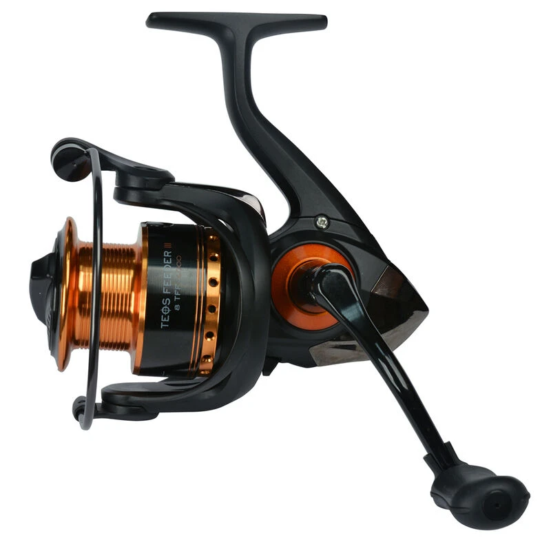 Ses 7 roulements à billes ainsi que son roulement à aiguilles lui confèrent une grande fluidité en action de pêche. Le moulinet feeder TEOS FEEDER III est également doté d’un line-clip rond métallique, monté sur amortisseur, qui permet de marquer facilement sa distance de pêche sans endommager le nylon ou la tresse : un point très important pour pêcher de manière précise sur un même poste. Un moulinet frein avant très technique muni de différentes technologies : Système anti-vibration, Anti-retour infini, Galet anti-vrille, Pick-up creux anti-chocs.