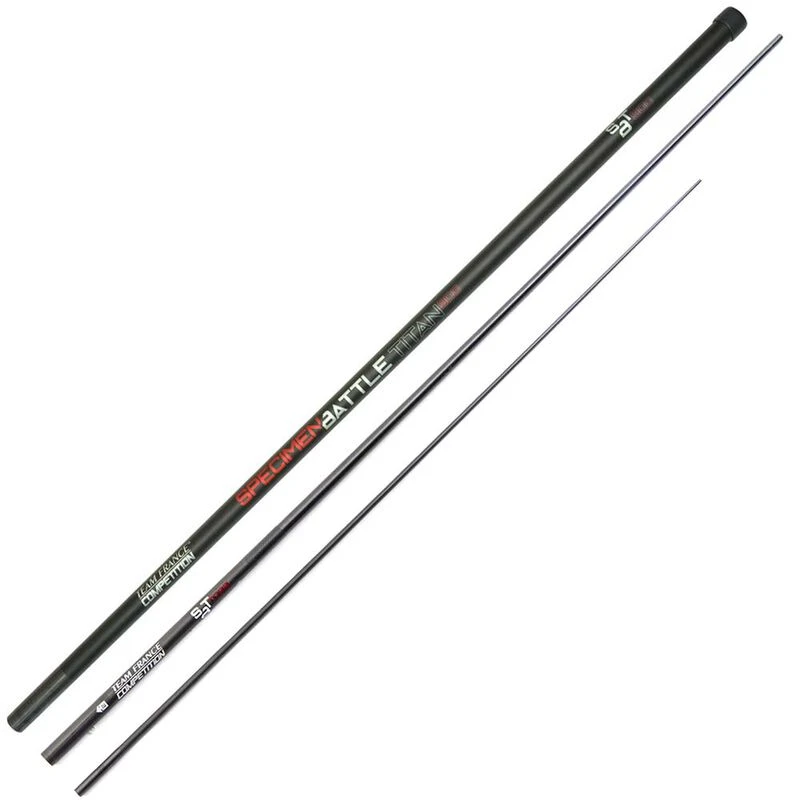 La canne à emboîtement Specimen Battle Titan 9.00m, construite en carbone renforcé, est d’une polyvalence rare. Elle offrira aux passionnés de la pêche au coup de se faire plaisir avec un produit extrêmement abouti et d’une fiabilité éprouvée. Rigidité, légèreté et maniabilité sont les maîtres mots pour la qualifier et font de cette canne un outil agréable à utiliser en toutes circonstances. En effet, cette canne à emmanchement convient aussi bien aux pêches fines de petits poissons comme les ablettes et gardonneaux, qu’aux pêches plus lourdes de gros poissons tels que les brèmes et carassins. La Specimen Battle Titan accepte des élastiques pleins jusqu’à 3.2 mm de diamètre.