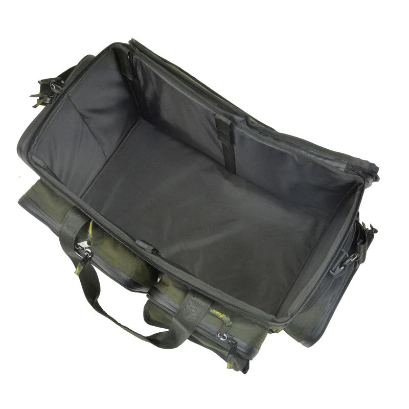Pourvu d’un large espace interne, ce sac chariot Master Carp Barrow Bag vous permettra ainsi de pouvoir y stocker aussi bien votre matériel de pêche que vos vêtements ou bien même votre nécessaire de cuisine. Le grand espace central est accessible par le dessus grâce à l’aide de deux couvercles. L’un s’avère rigide permettant de servir de table d’appoint lors de la réalisation d’un montage, tandis que l’autre partie est en toile classique. Grâce au double système d’ouverture vous pourrez ainsi séparer votre matériel tout en ayant un accès rapide.