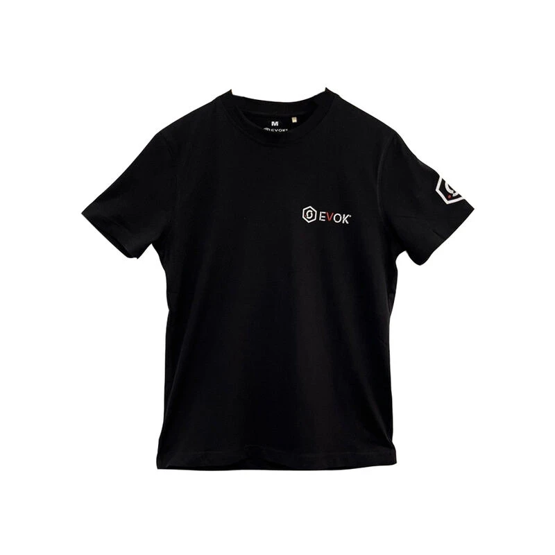 T-shirt noir simple comportant le logo de la marque sur la face avant du t-shirt.