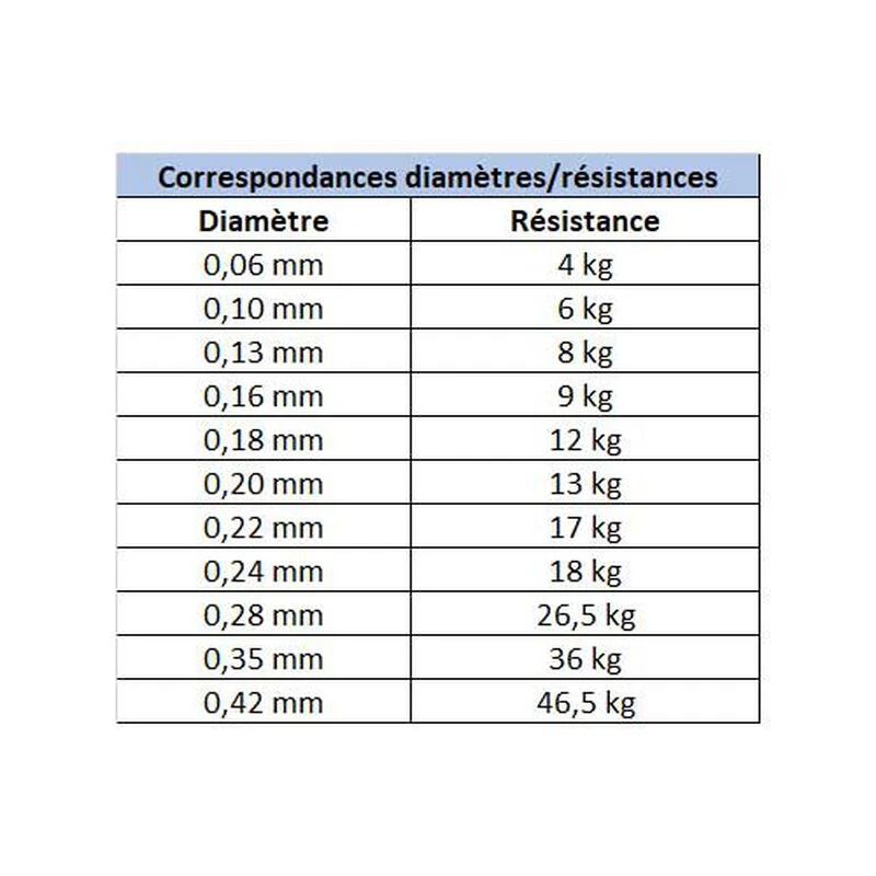 Correspondances diamètres / résistances :