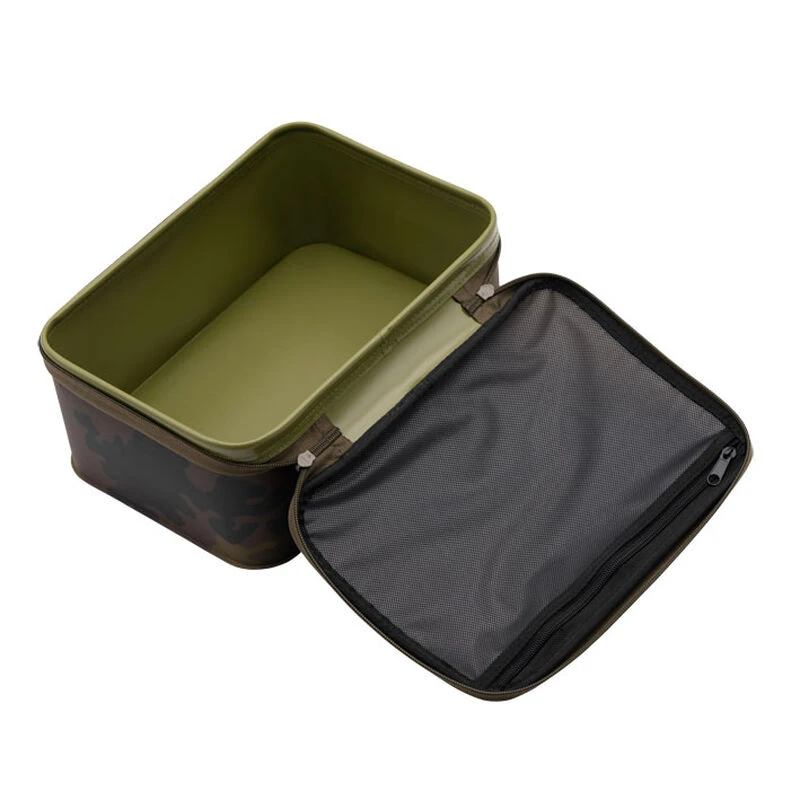 Tout le contenu de la boite peut être atteint en un clin d’œil grâce au couvercle zippé qui lui aussi possède une pochette zippée afin-de ranger vos aiguilles et autres petits accessoires carpe sur le dessus de celui-ci.